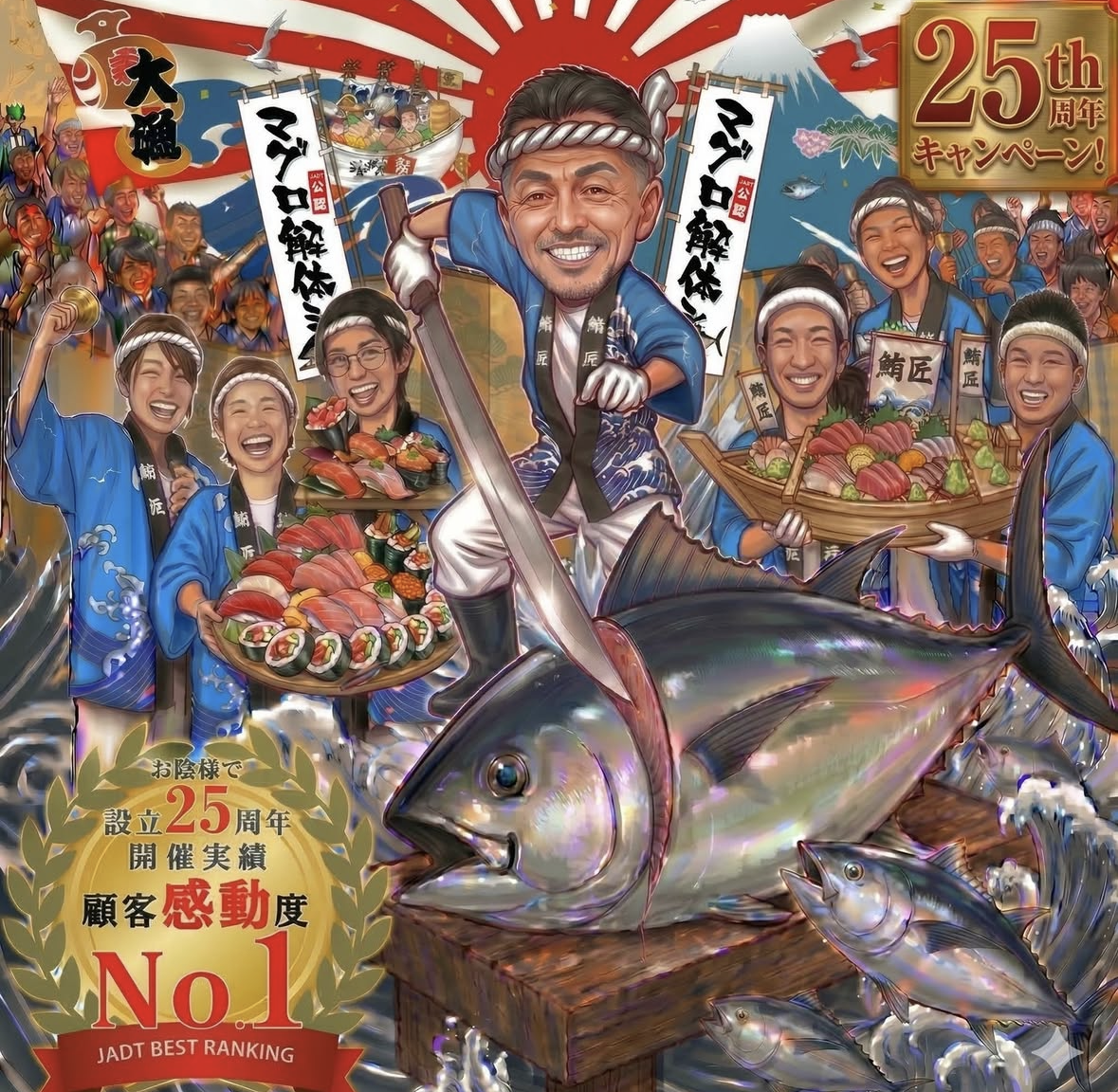 設立25周年!! 延べ1,500回以上20万名様への提供実績! ✨️とにかく感動させます!✨️ 漁師・魚河岸・漁港・侍・祭の演出 五感で堪能 マグロ解体ショー専門のプロ集団